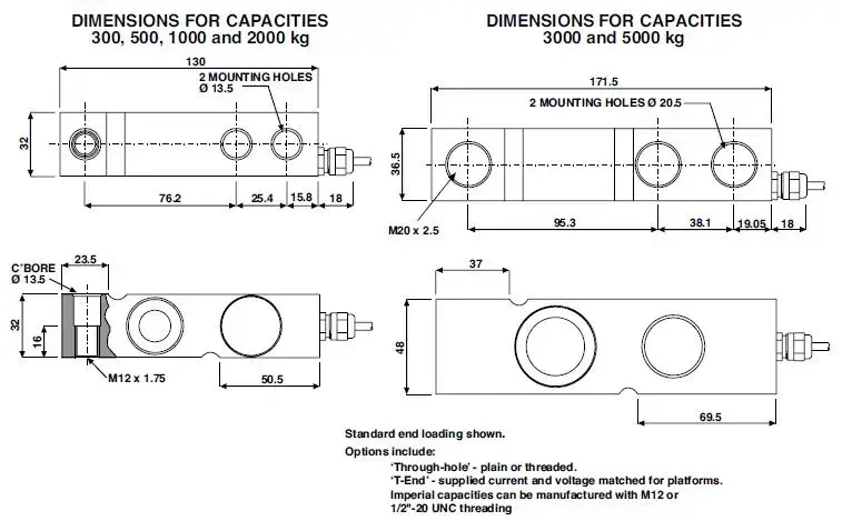 300 kg, 500 kg, 750 kg, 1 t, 1.25 t, 2 t, 3 t, 5 t, 1 klb, 1.5 klb, 2.5 klb, 4 klb