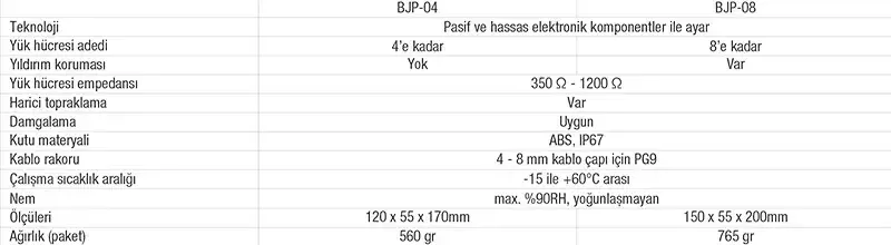 • Bir terazinin hassasiyeti sadece tartı göstergesinin ve yük hücresinin kalitesine bağlı değildir. Yük hücresi bağlantı kutusu terazinin hassasiyetini belirleyen en önemli üçüncü parçadır. Baykon BJP serisi yük hücresi polyester bağlantı kutuları, kamyon kantarları, tank tartımı, silo tartım sistemleri, konveyör terazileri, yüksek kapasiteli yer kantarları ve polyesterin direncinin yeterli olduğu diğer kimyasal sahalardaki çeşitli endüstriyel tartım uygulamalarında kullanılmak üzere tasarlanmıştır.