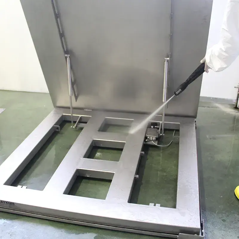 • Baykon BP Terazi platformu komple paslanmaz çelik yapıdadır ve IP68 koruma sınıfında yük hücrelerine sahiptir. Kullanım şartlarına bağlı olarak çukurlu ya da zemin üstü olarak kullanılabilir. Zemin üstü kullanımda, alçak platform yapısı kolay ve ergonomik kullanım sağlar.