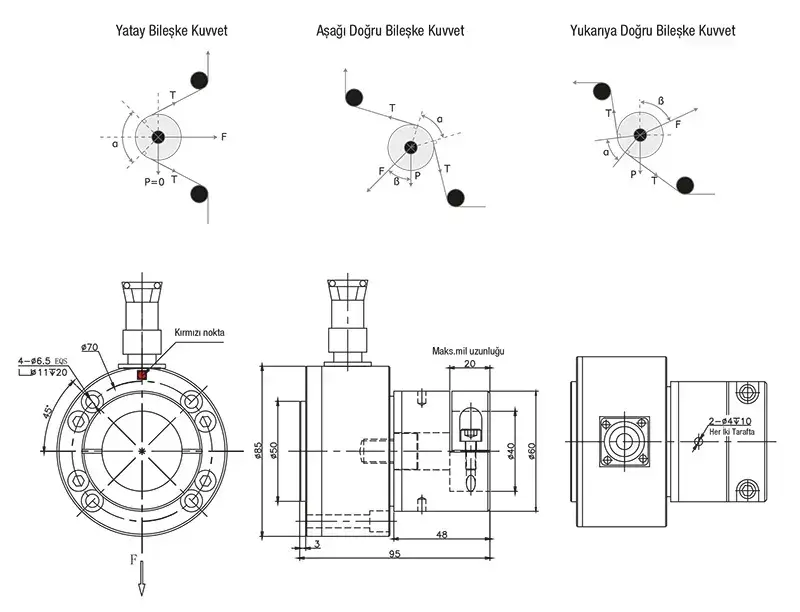 • BW050 serisi gerginlik ölçen yük hücreleri, bobin miline doğrudan ve kolayca monte edilerek, malzemenin çekilmesiyle olușan kuvvetlerin bileșkesini sarma açısına bağlı olarak hassas bir șekilde algılar.
