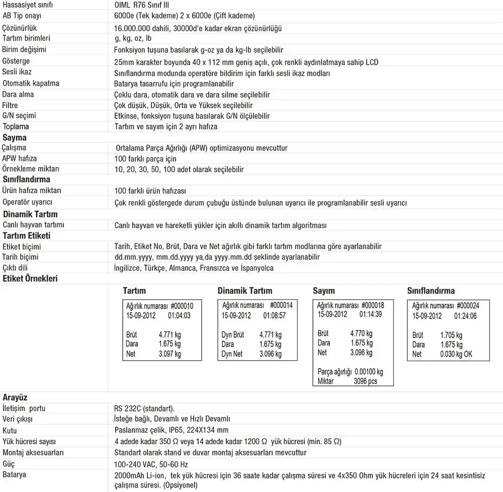 • Çok renkli ekran özelliği temel tartım, kontrol tartımı ve canlı hayvan tartımı gibi uygulamalara fonksiyonel özellikler katar.