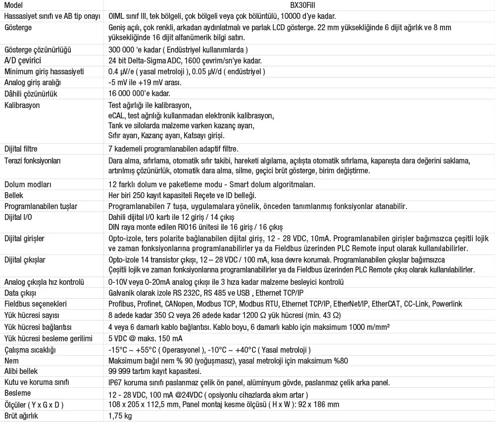 • BX30Fill dolum ve paketleme kontrolörü, çeșitli dolum ve paketleme makineleri için tasarlanmıș, yüksek teknolojiye sahip, akıllı ve ekonomik bir cihazdır. Konfigüre edilebilen reçete hazırlama özelliği, smart doldurma algoritmaları, dolum ve paketleme uygulamalarında büyük avantajlar sağlar.