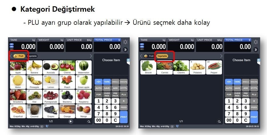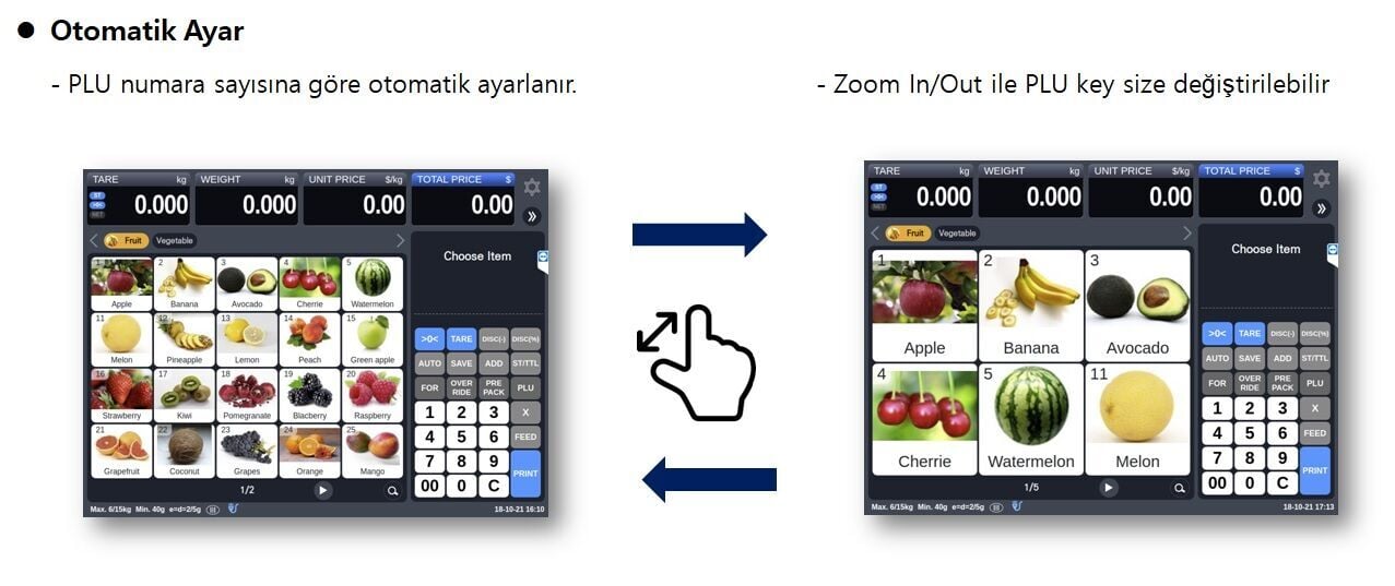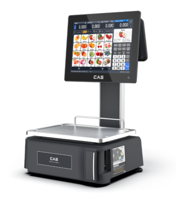 • 15" dokunmatik ekranlı yeni model CAS CL-8000, kullanışlı ve modern bir arayüze sahip süpermarketler için bir standart satış ve self servis modu bulunan terazi sistemidir.