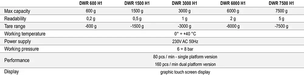• DWR/H serisi rotatif otomatik kontrol terazileri yüksek güvenilirlik ve hızda çalışırlar. Sistem son derece kararlıdır ve parametre ayarları güvenli bir şekilde tutulur. Teraziler değişik müşteri istekleri ya da farklı uygulamalar için kolayca konfigüre edilebilirler. Zorlu endüstriyel koşullara rağmen kararlı bir şekilde çalışan, Windows bazlı bir endüstriyel bilgisayarla dizayn edilmişlerdir. Grafik dokunmatik ekranı kolay kullanım sağlayan pratik bir arayüz oluşturmaktadır.