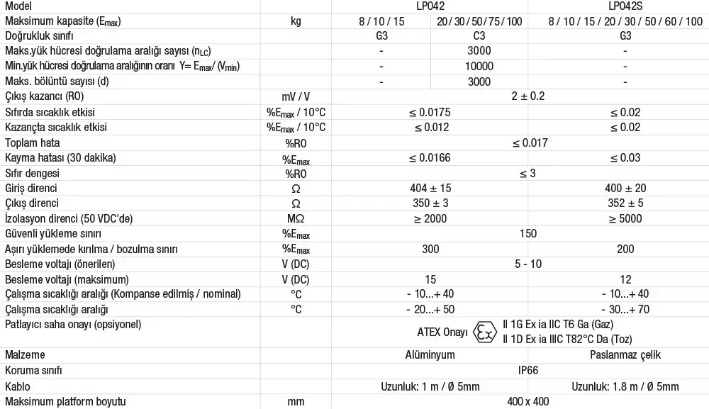 • Model LP042, EU OIML C3 onaylı, alüminyum yapıda bir yük hücresidir. Model LP042S, endüstriyel kullanıma uygun, paslanmaz çelik yapıda bir yük hücresidir.