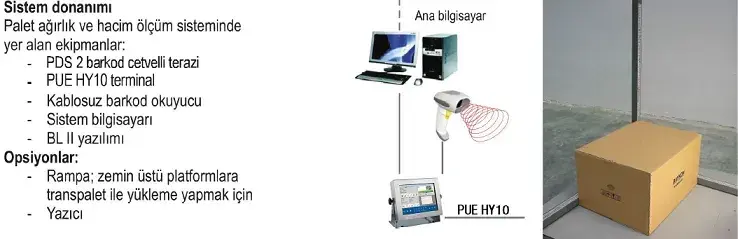 • Boyut ölçümü zaman alan ve operatör hatalarına açık bir işlemdir. PDS 2 barkod cetvelli terazi ile paletlerinizin ağırlık ve ebatlarına kolay, hızlı ve hatasız olarak ölçebilirsiniz.