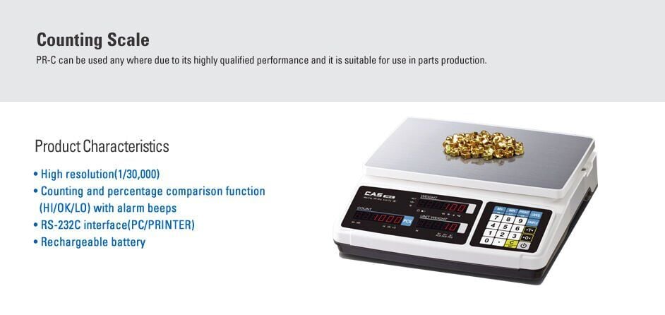 • PR-C Sayim terazisi, parça sayım çözümleriniz, birim ağırlığı girerek sayma özelliği, numune vererek sayma özelliği vardır. Birbirleriyle eş değer ağırlıktaki tüm malzemelerin sayımı yapılabilir.